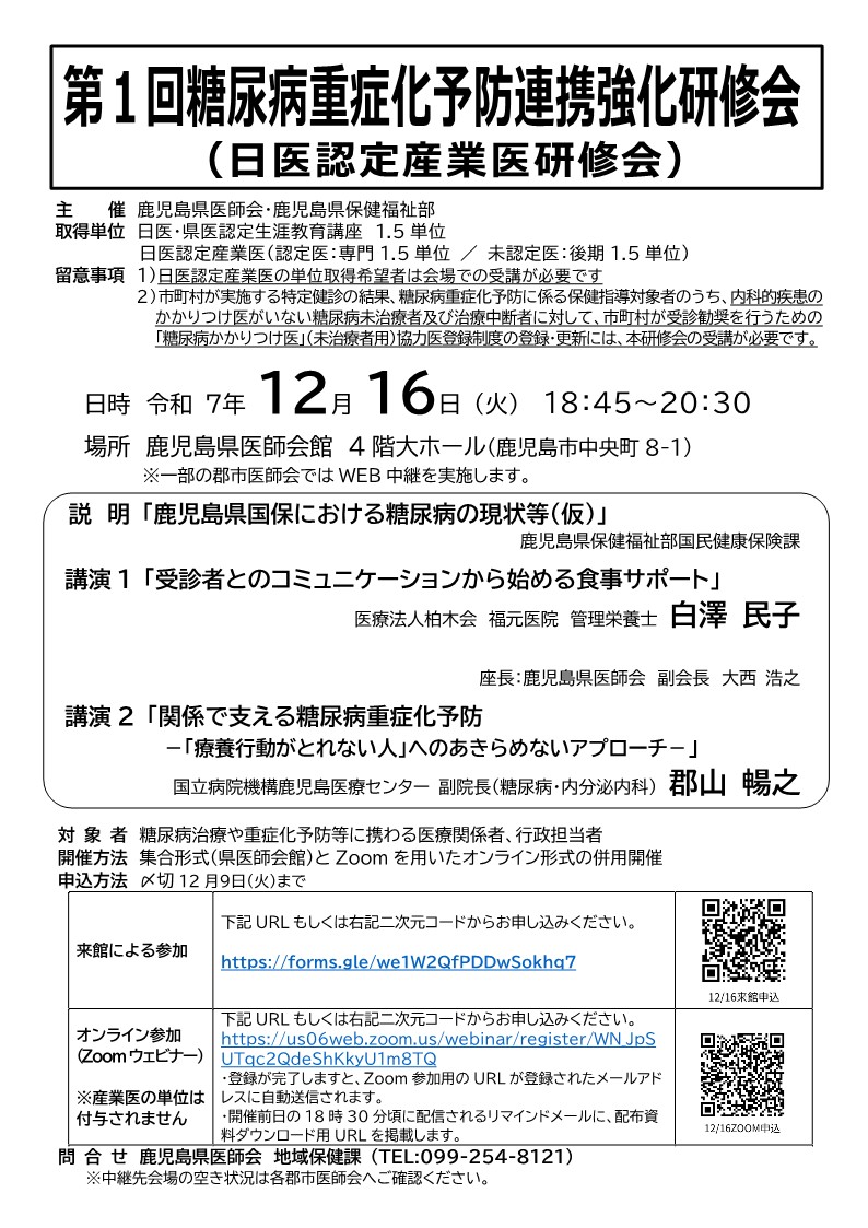 2025.11.11 第1回糖尿病重症化予防連携強化研修会(12/16)【日医認定産業医研修会】