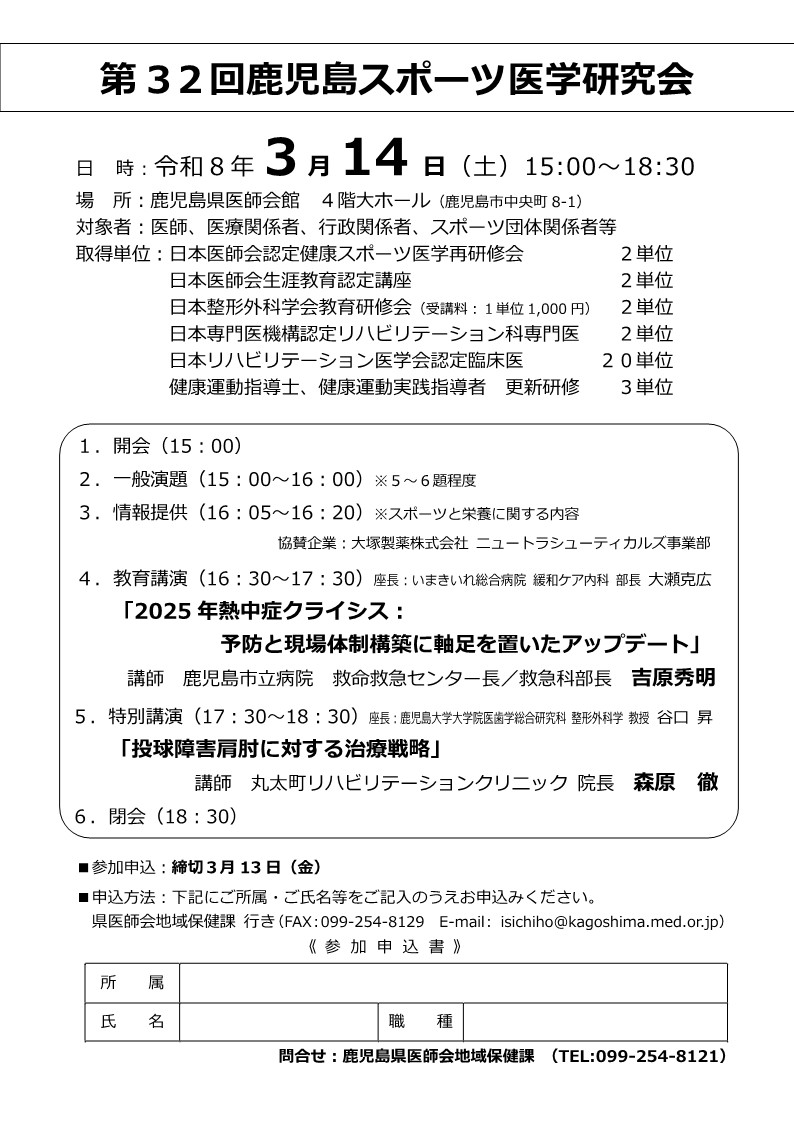 2026.02.18 第32回鹿児島スポーツ医学研究会(R8/3/14)